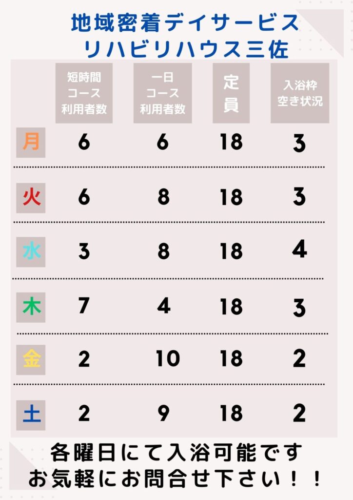 平素より、地域密着デイサービス リハビリハウス三佐のホームページをご覧いただき、誠にありがとうございます。